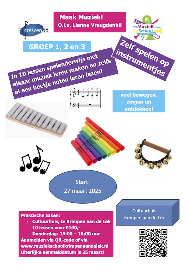 Met het Leerlingenorkest vullen wij de laatste missende schakel in de doorstroomvisie van Crescendo: deze begint met Muziek op Schoot voor de allerkleinsten vanaf 9 maanden, via AMV en muziekles naar het Leerlingenorkest. Dit orkest biedt vervolgens de opstap naar de andere orkesten van Crescendo: het Jeugd- en Opleidingsorkest, het Symfonisch Blaasorkest en de Drumfanfare.